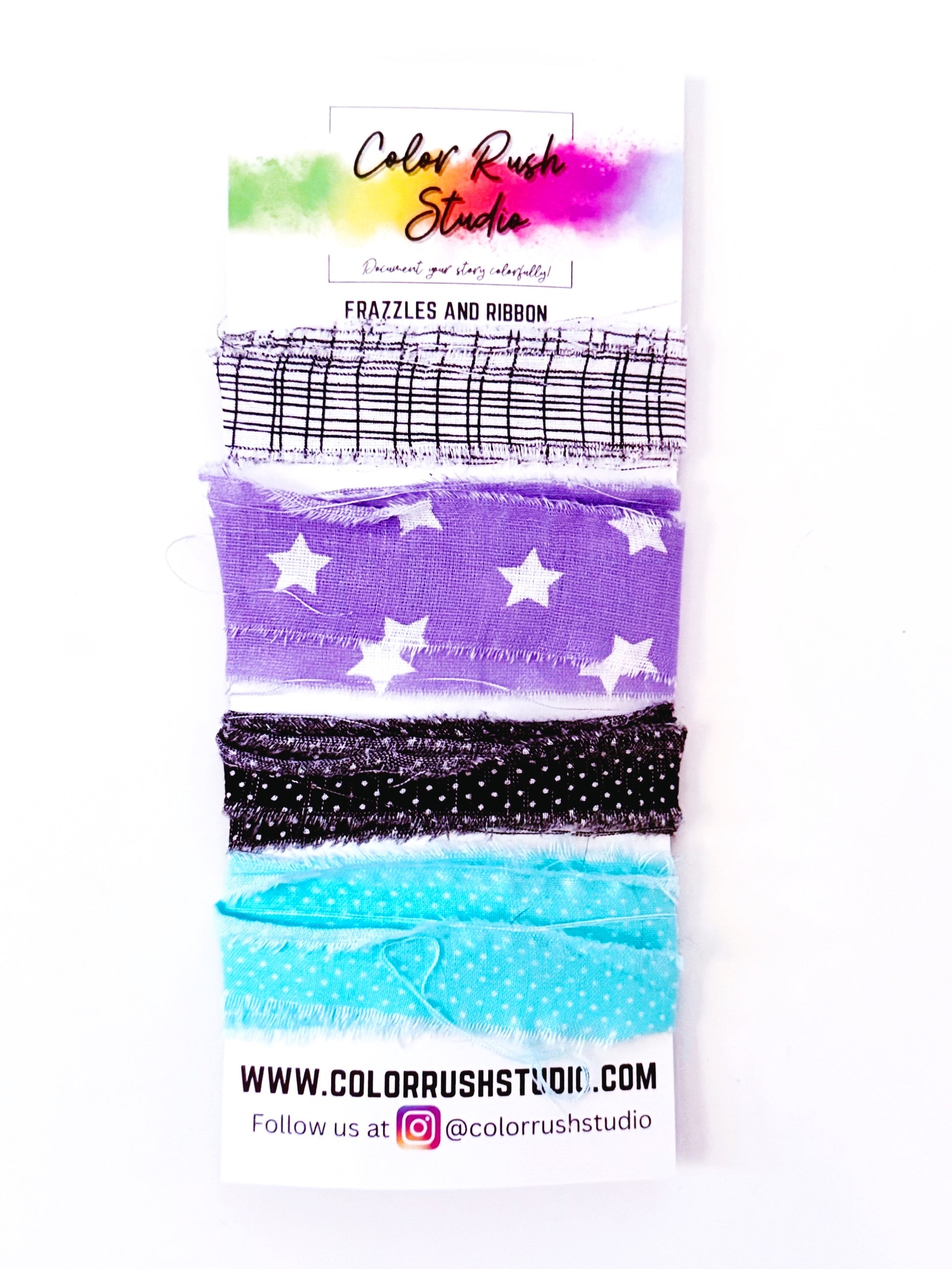 Bring texture and depth to your scrapbook pages or handmade cards with our frazzle ribbon. This black and white collection has 4 different patterns 36" each that adds so much personality to your artwork.