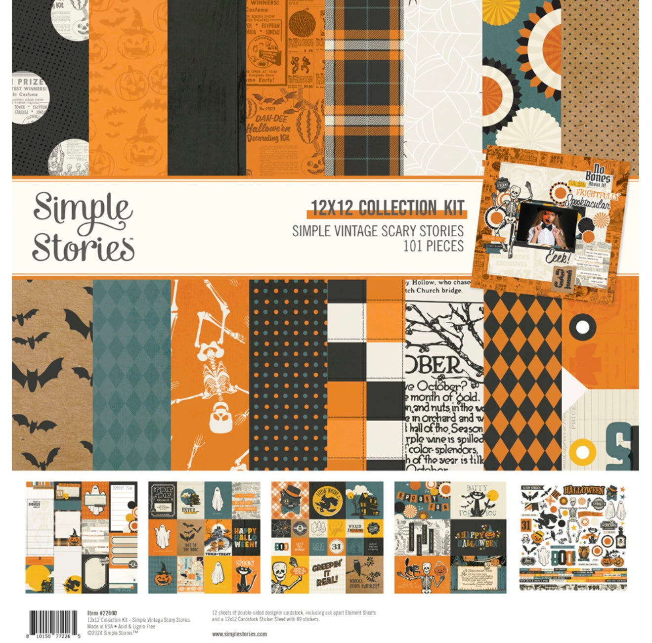 1 - Full Simple Stories collection 12 patterned papers and coordinating stickers